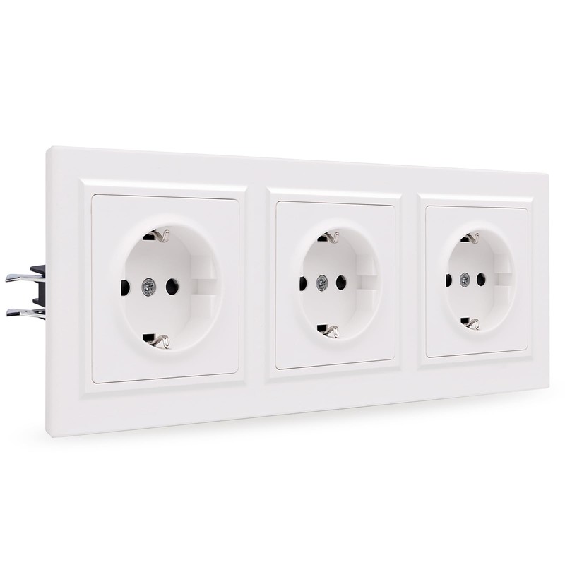 JIMEIDA Socket White Smooth PC Surface, 3 Compartments with Hooks, Not Vertical Mountable, 16 Amp Schuko Socket, 228 x 86 mm, 250 V