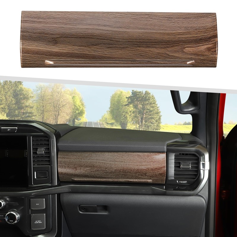 Jimen Compatible with Ford F150 2021-2024, Center Console Co-Pilot Storage Box Panel Cover Trim (Wood Grain)
