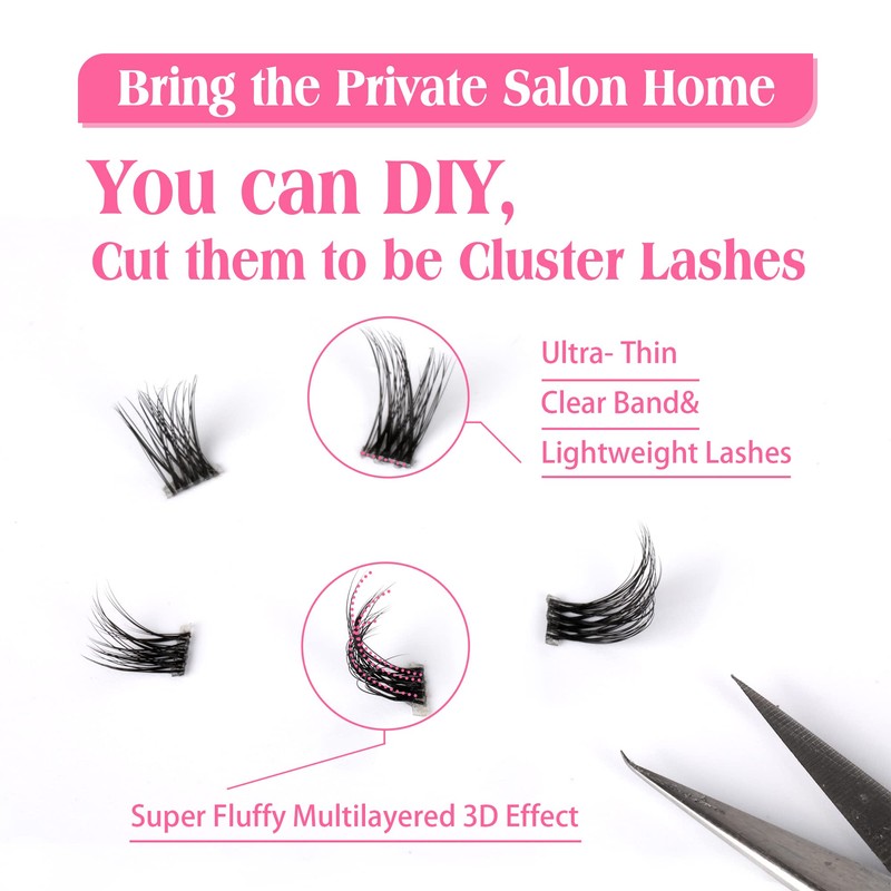JIMIRE Half Lashes with Clear Band Cat-Eye Lashes Fluffy Wispy Accent False Eyelashes Natural Look Handmade Soft DIY Cluster Lashes Pack 7 Pairs