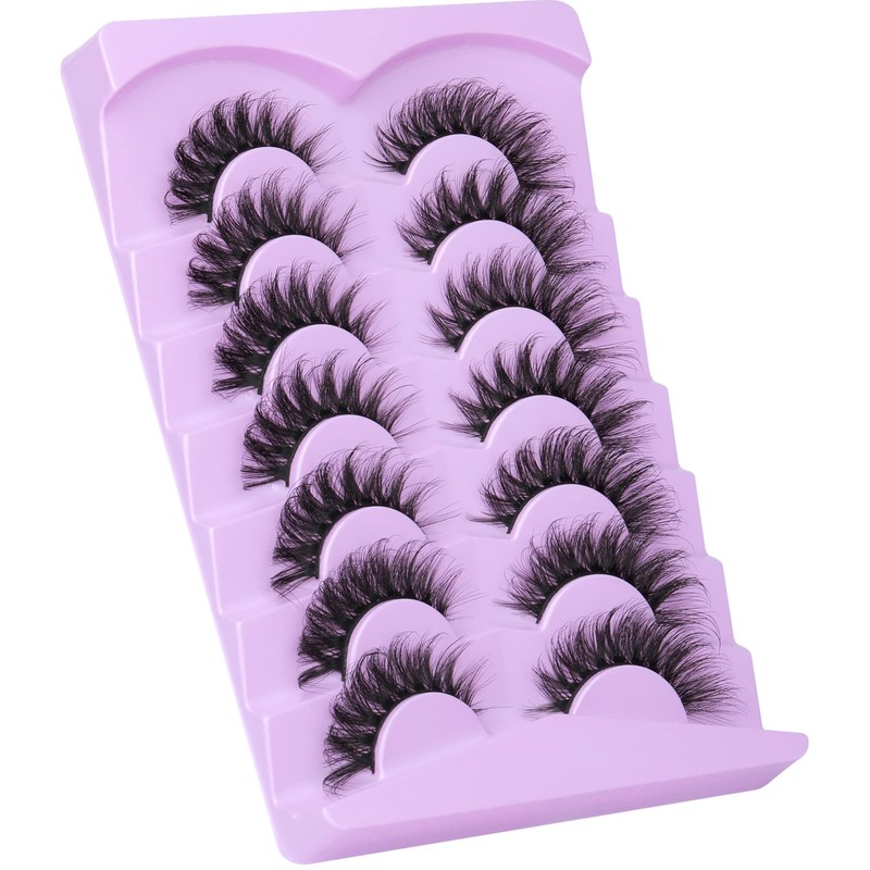 JIMIRE JIMIRE Mink Lashes Fluffy Cat Eye False Eyelashes Volume Wispy Fox Eye Full 17MM Thick Fake Lashes Look Like Eyelash Extensions Pesta?as7 Pairs Pack