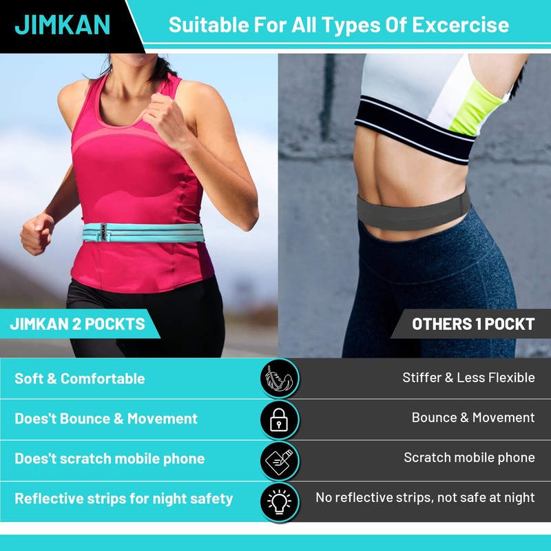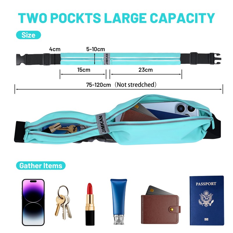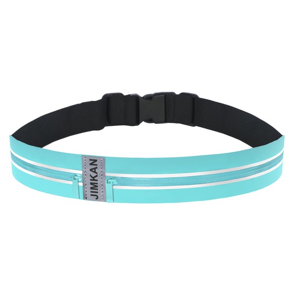 JIMKAN Running Belt with 2 Independent Large Pockets, Mint Blue, Sports