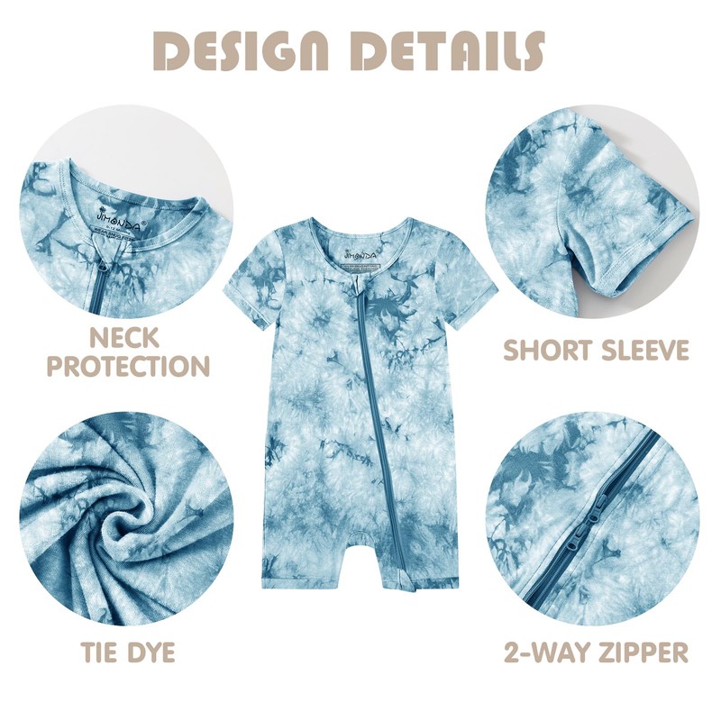 Jimonda Baby GIRLS BOYS Rayon From Bamboo Pajamas 3 Pack Short Sleeve Footless Outfit Romper 2 Way Zipper Tie Dye Bodysuit Pjs Sleep Play(Blue&Coffee&Gary,3-6 Months)