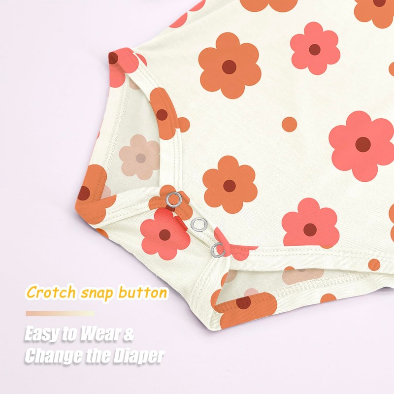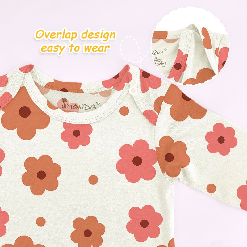 Jimonda Baby Rompers | Soft Summer Long-Sleeve Bodysuit for Newborns 0-24M | Breathable Infant Onesie with Snap ButtonsFlower