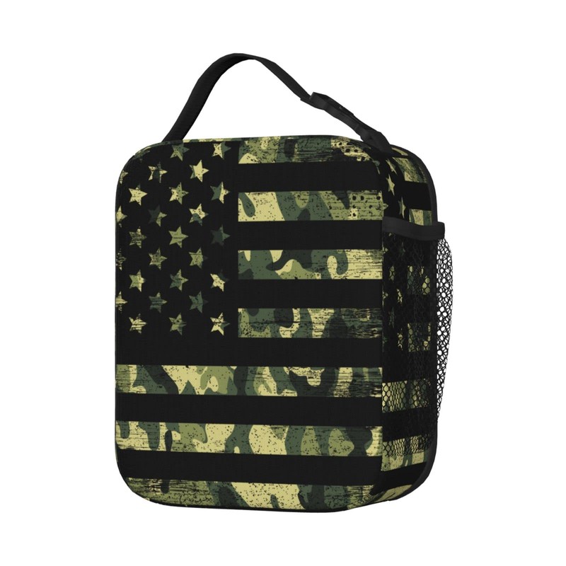 JIMOWANG Camouflage American Flag Lunch Bags Reusable Tote Lunch Box for Office Work School Picnic Camping Thermal Insulated Meal Bag