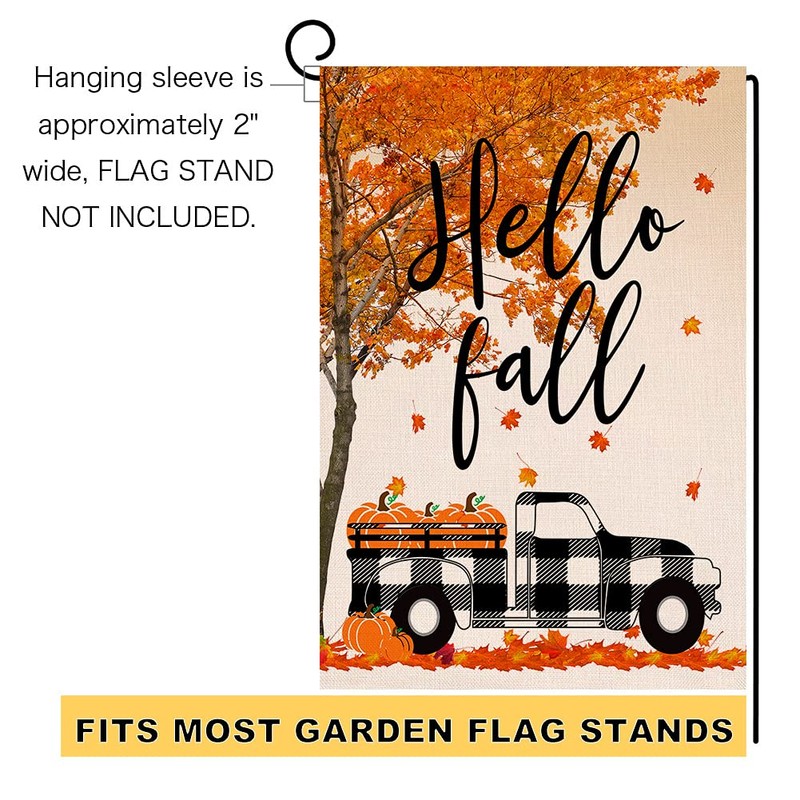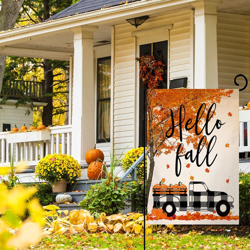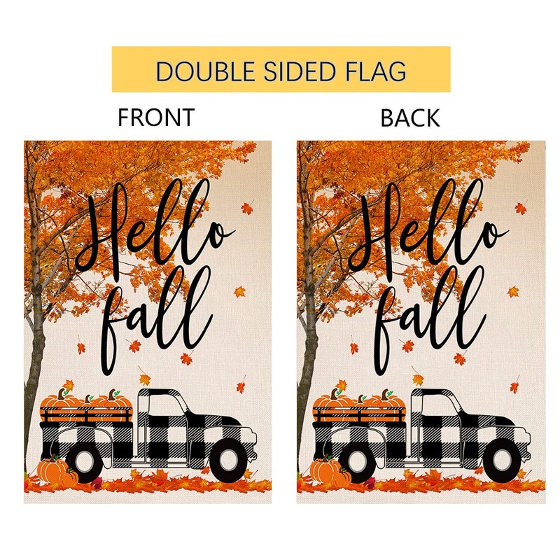 JIMOWANG Fall Pumpkin Buffalo Truck Burlap Garden Flag Double Sided Outdoor Decorative Yard Flag 12"x18" Porch Patio Banner Flags