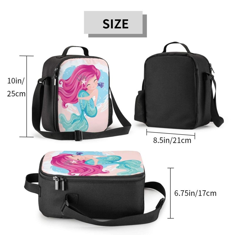 JIMOWANG Mermaid Girl Insulated Lunch Bag with Shoulder Strap and Bottle Holder Portable Thermal Lunch Container Bag for School Travel Picnic