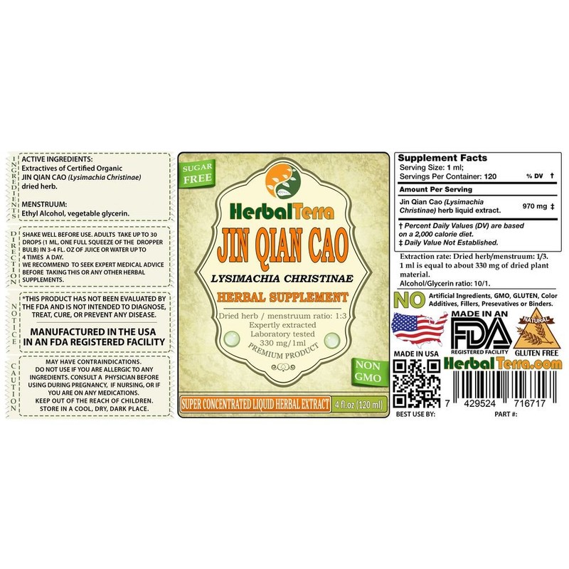 - Expertly extracted under strict quality standards and procedures from Organic Jin Qian Cao Dried Herb. We meticulously produce our extracts according to precise standards where each herb is extracted according to the distinct characteristic of each plant!