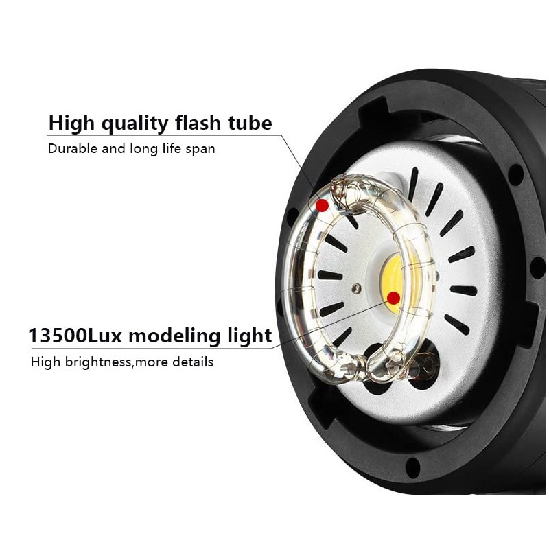 - 【Excellent strobe flash】400W Strong Power, high GN66, 7 steps of power adjustment: 3.0-9.0(1/64-1/1), Flash duration 1/800S-1/2200S, Recycling time 0.1-0.9S All-optical high-speed Recycling, Can shoot continuously without overheating, suitable for large-scale, high-intensity continuous shooting needs of e-commerce online stores and photography studios.