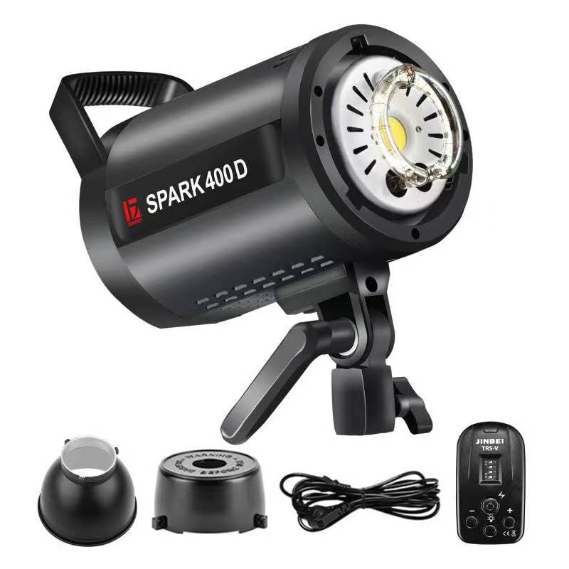 JINBEI SPARK-400D 400Ws GN66 Studio Strobe Flash Light,Recycle Time in 0.1-0.9 Sec,Built-in 2.4G Wireless with Bowens Mount LED Modeling Lamp Photography Flashes, Include 2.4G Wireless Trigger