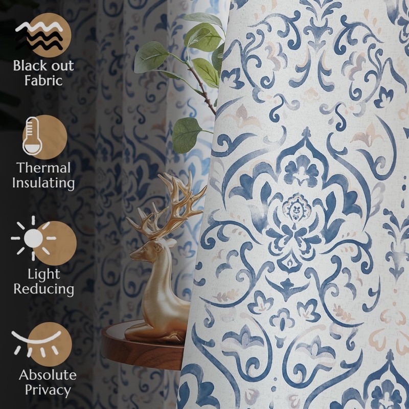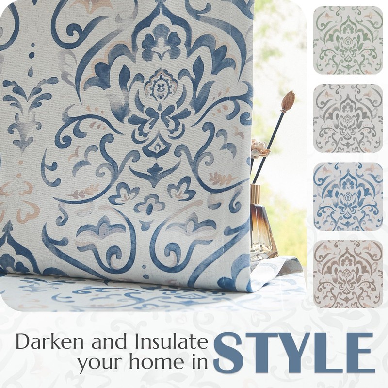 - 100% Blackout Curtains: Creating a cozy atmosphere in your bedroom begins with JINCHAN blackout curtains. Package includes 2 panels in 52 inch wide by 63 inch long each, 104 by 63 combined. Offered in 4 colors, these medallion panels dress up your home with rustic romance.