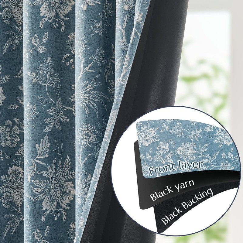 - Effective Light Blocking: Made of supersoft yet robust fabric in Black, these floral print curtains feature a densly woven backing for effective light and heat control. They can block out bright sunlight, soften outside noise, and regulate the temperature, creating a dark, quiet and warm space for you to relax