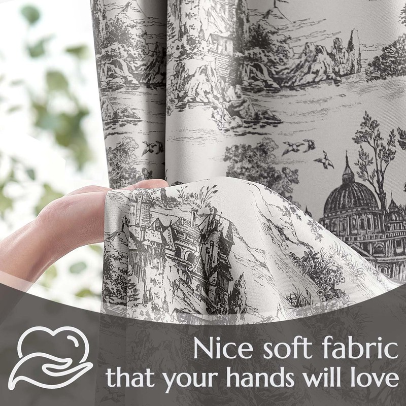 JINCHAN 100% Blackout Toile Curtains for Bedroom, 96 Inch Length Drapes Toile de Jouy French Printed Castle for Living Room, Light Blocking Thermal Insulated Window Treatment Rod Pocket, 2 Panels Grey