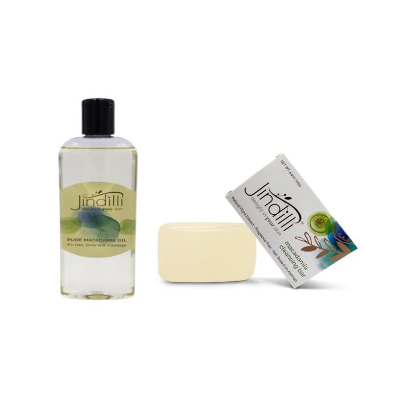 Jindilli Pure Macadamia Oil 7.5 fl oz and Body Cleansing Bar Bundle