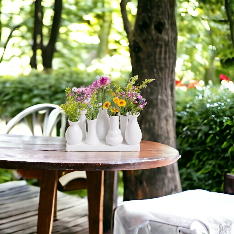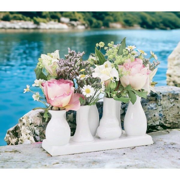 Jinfa Handmade, Small, Ceramic, Decorative Flower Vases, Set of 7 Vases in White