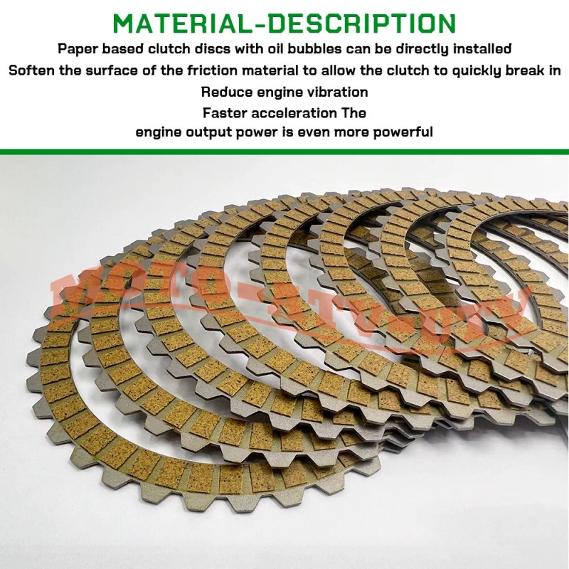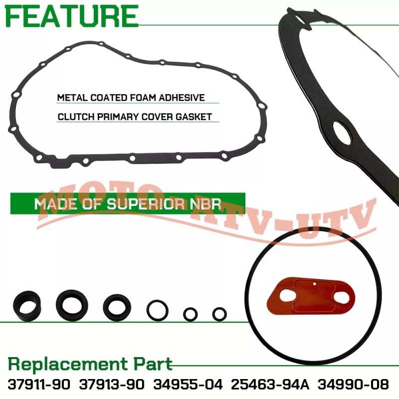Made with metal-coated foam adhesive for the Clutch Primary Cover Gasket and paper-based clutch discs with oil bubbles for direct installation, ensuring durability and reliability.
