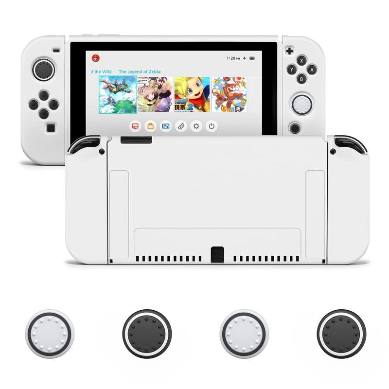 JINGDU Protective Case Compatible with Switch OLED, Dockable TPU Cover Accessories for Switch OLED Console and Grip Joy-Con, The Switch Protector with 4 Thumb Grip Caps,(White)