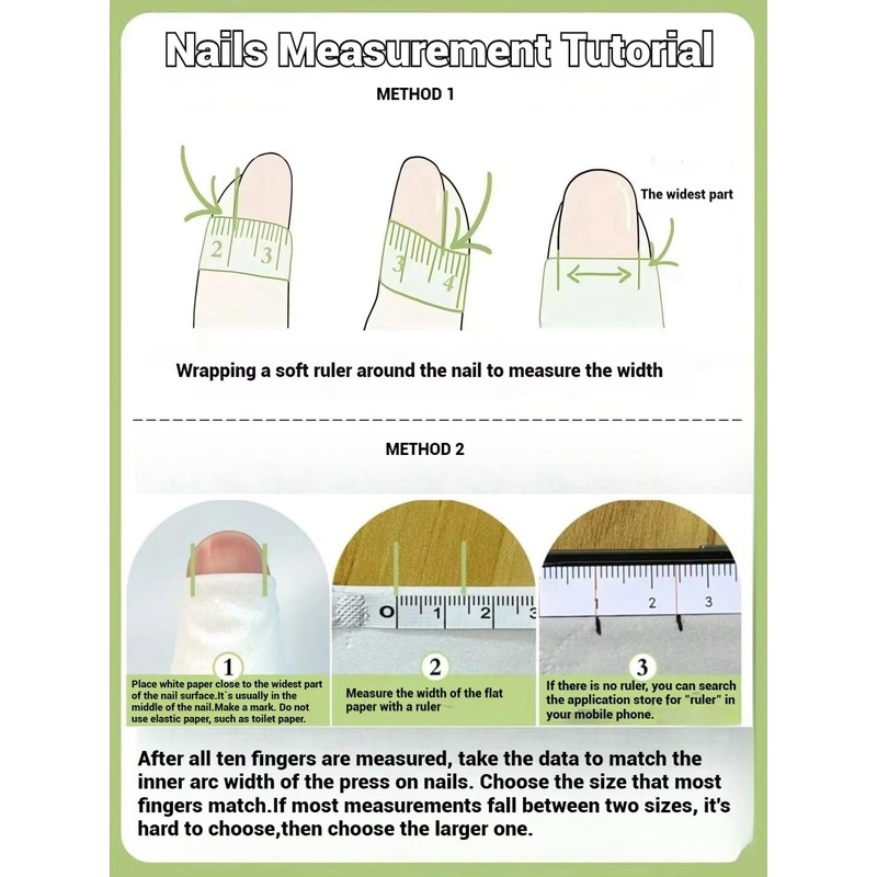 【The most important thing is size 】Each set includes 10 fake nails,,the size of this set is M, there is the detailed size introduction in the product pictures, please measure the size of your fingers before purchasing, if you fit other sizes, please search for other links in my shop,Hope to give you a good experience. 【At-Home DIY 】 Each kit includes 10 fake nails,we give away sponge file,double-sided jelly gel nail glue.manicure Stick and mini nail file, so you have everything you need for a perfect and precise manicure. 【High-quality handmade】The color and patterns are drawn by hand instead of printed by ink.look very natural.The pattern looks more exquisite and the accessories will be more glossy and firm.Providing a salon-quality finish at home. 【Better fit, durable,Sticky firmly and reusable】Handmade press on nails crafted from high-quality materials,the nails are soft and flexible, zero pressure on your nail beds and feel like real nails.Supremely fit the nail bed with a gentle flex and a seamless cuticle line.the shape and size of the nails are perfect for multiple nail beds shapes.It can be reused even if the nail pieces fall off.didn't damage nails or leave any residue.removed easily when you want to take them off. 【Wide Applications】Suitable for various social occasions .Perfect to be used on wedding ,prom ,dating, and they also suitable for Valentine's , Halloween, Christmas Day and other festival,giving you the freedom to switch up your style effortlessly,handmade nails are the fine gift for women and girls.given the perfect gift for your mother, girlfriend or sister and other people your love.