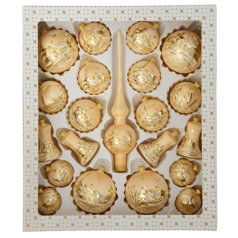 - Christmas tree bauble set 21 pieces with lace, ice lace, champagne with golden decoration