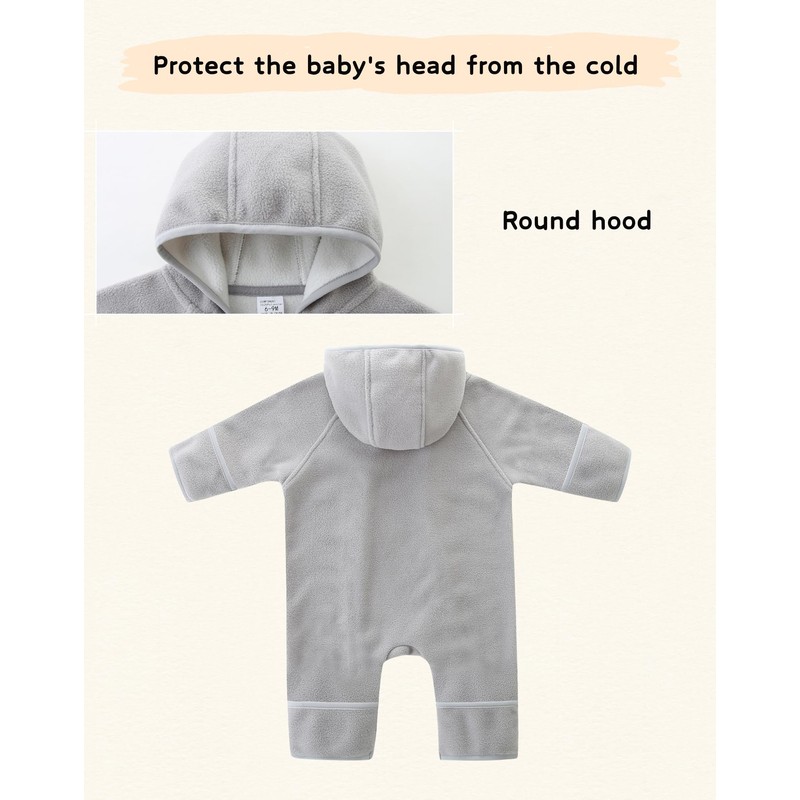 - [Warmth and Comfort] The adorable baby fleece jumpsuit has an all-match solid color design and a round hood that'll protect your baby's head from wind and cold. And the soft fleece gently wraps around like clouds, combining breathability and warmth, allowing babies to enjoy spring like comfort even in winter.