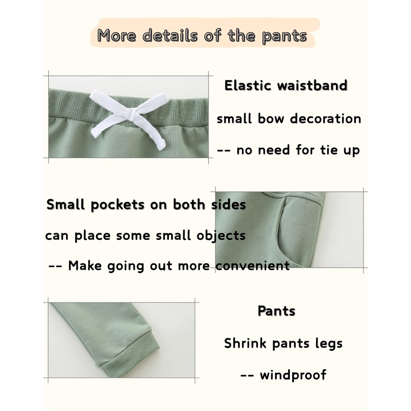 - 【Design Features】This infant boys' sweatshirt features a round neck and long sleeved design, with printing of letters and cartoons adding a touch of fun to the baby's overall outfit. The matching casual pants is designed with an elastic waistband and small pockets on both sides, paired with small bow decoration, simple and fashionable.