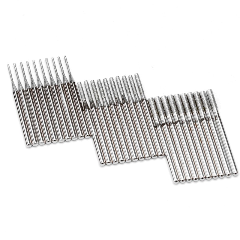 JINGLING 1 2 3 mm Diamond Drill Bits Stone Carving Kit Lapidary Supplies Jewelry Making Glass Cutting Bit for Dremel Tool Accessories Pack of 30Pcs