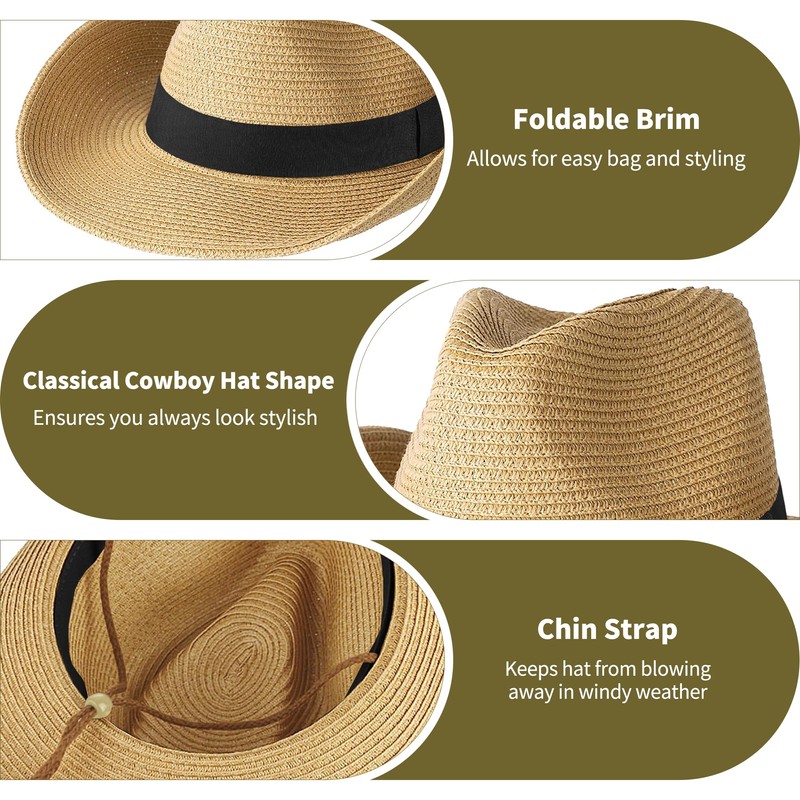 - 【Design】 Featuring an windproof cord, the straw cowboy hat ensures a secure fit even in windy conditions. The brim contains iron wire, allowing you to customize its shape.