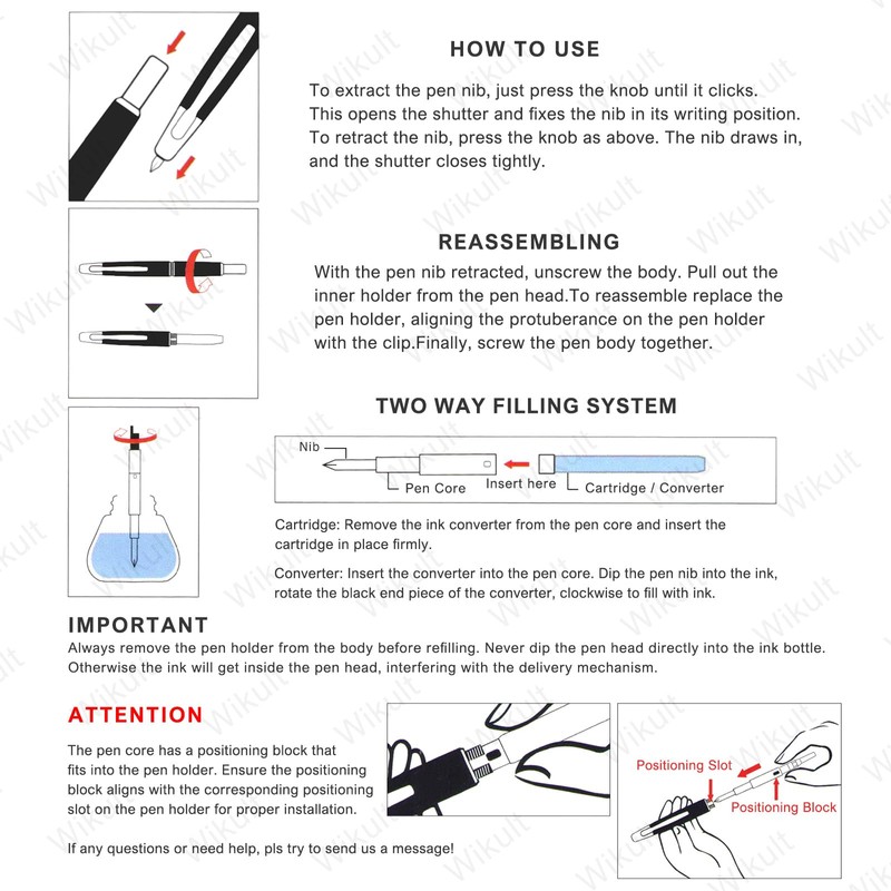 - Ink: Fit all non-carbon bottled ink or 5.5 mm caliber ink cartridges