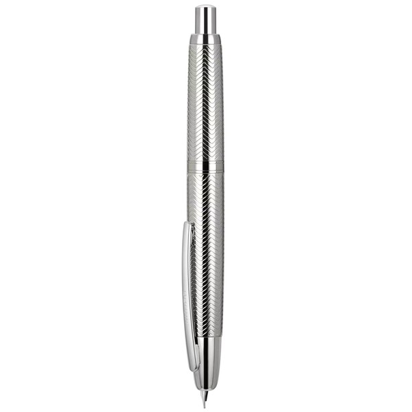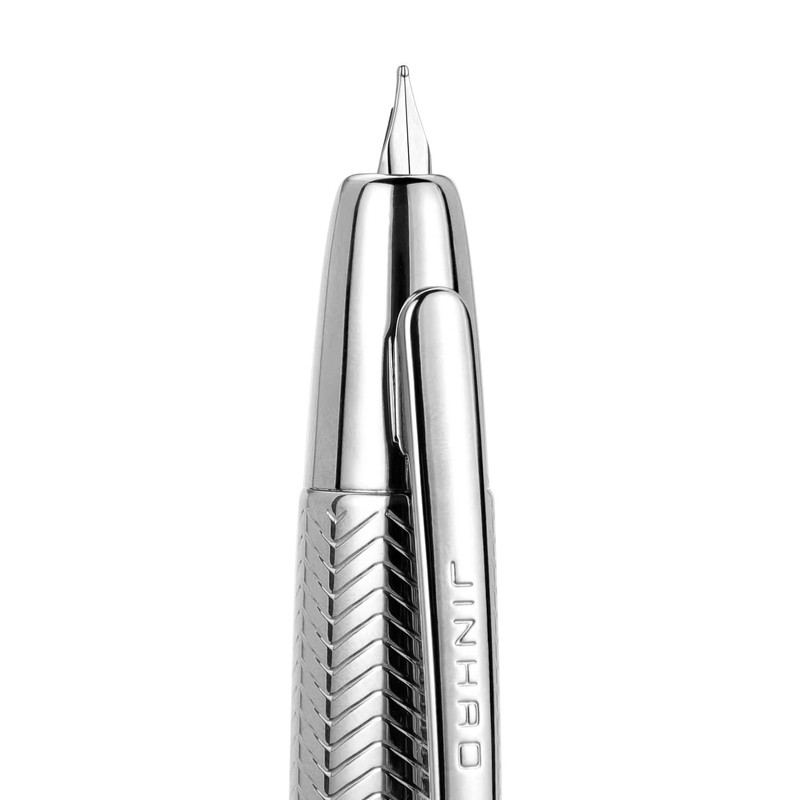 Jinhao 10 Series Press Fountain Pen Wavy Bright Chromium Retractable Fine Nib with Ink Converter and Metal Pen Box Set (Silver Clip Version)