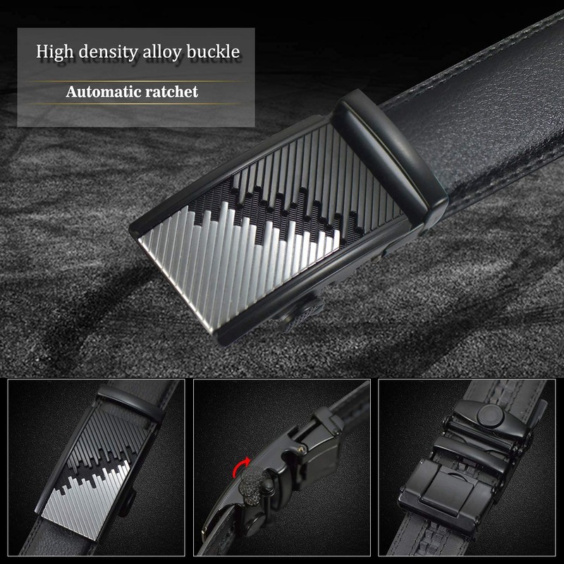 JINIU Men's leather Slide Ratchet Belt Casual with Automatic Buckle For Men Dress Pant Shirt Micro Adjustable Trim To Fit Everywhere KT22