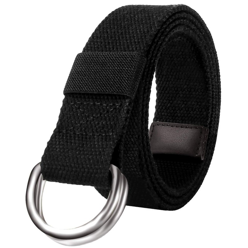 JINIU Canvas Fabric Web Football Belt for Men Sport Belts Fully Adjustable D-ring Solid Color 1.5" wide BLACK 55" long