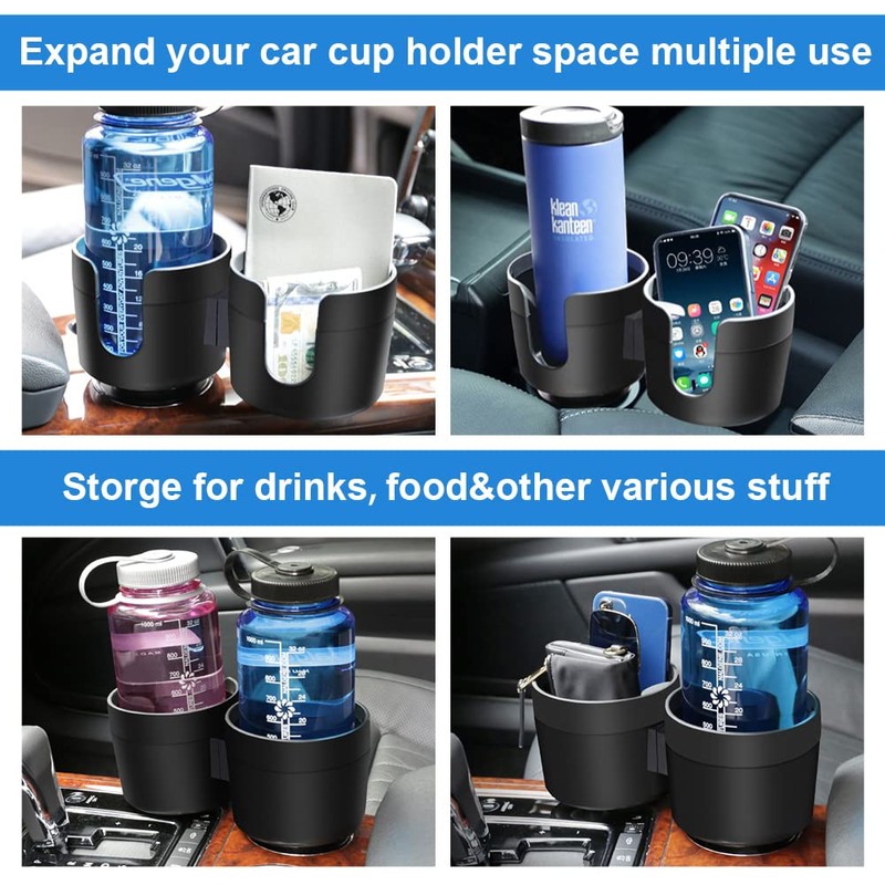 • 2 in 1 Car Cup holder expander:This 2 in 1 cup holder expander for car provides you an extra cupholders to save space in your car and provides enough capacity. Increase the possibility of use and meet more storage requirements.You can not only store cell phones,drinks,water cups,coffee and even instant noodles to make the most of the space in the car