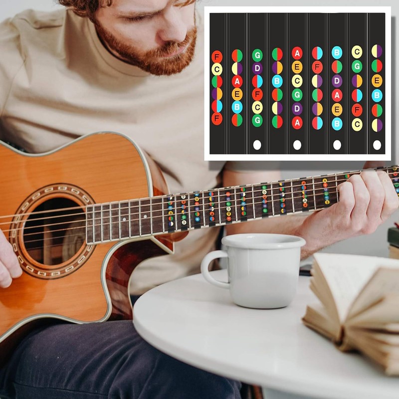 - GUITAR&UKULELE FRETBOARD STICKERS: Detachable guitar&ukulele stickers, the note back glue is clean and durable, can be removed/pasted many times without leaving any residue, it will not harm your favorite guitar&ukulele at all. It makes your learning easy and speeds up your memory, you can enjoy yourself while playing guitar completely