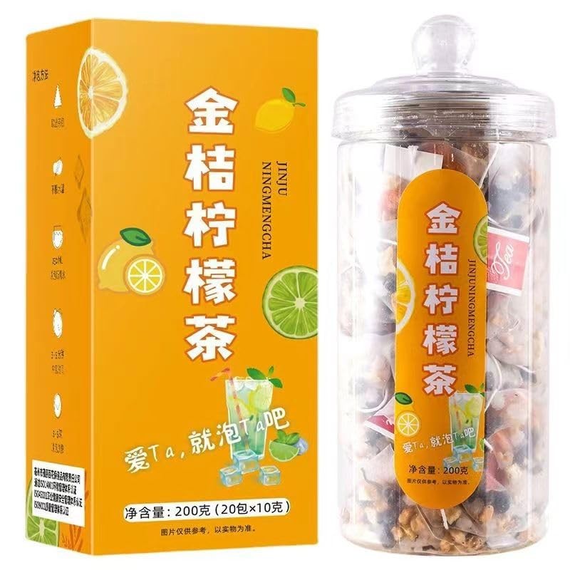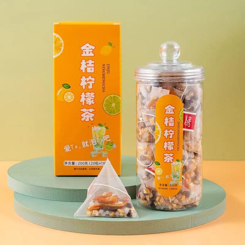 JINQI Chinese Fruit Tea Caffeine Free Fruit Tea bags Mixed fruit tea (Kumquat Lemon Tea) 金桔柠檬茶 (200g, 10gX20Bags)7.05OZ