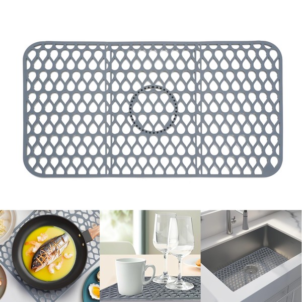 Jinqipura Silicone Draining Sink Mat, Kitchen Sink Protect, 26x14" Gray Rectangular