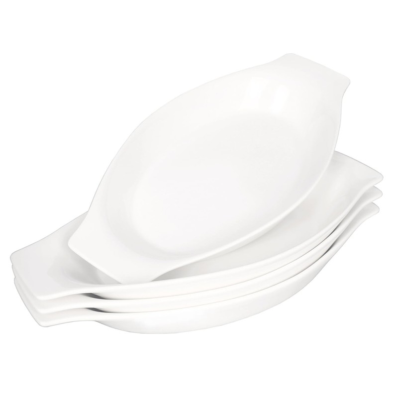- Oval Au Gratin Dish Design: Smoothly glazed and classic in design, the white Au Gratin baking dish will never go out of style. It's also a charming addition to your kitchen and dining table, and might just impress your guests!