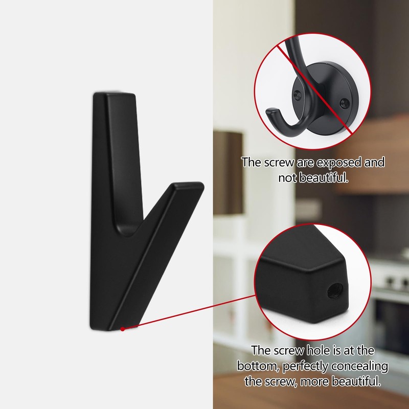 - Hidden screws: We use invisible screws for installation, the scientific installation method hides the screws on the back, which perfectly reflect the beautiful and strong safety features of the coat hook, which can visually enhance the bathroom or kitchen and create a modern and timelessly elegant atmosphere.