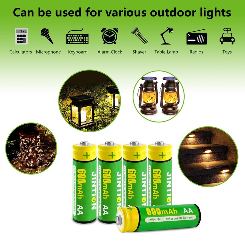 - High Performance - 1.2 volt 600mAh AA solar batteries rechargeable,Package included: 12 x solar battery 1.2v ni-mh aa 600mAh.