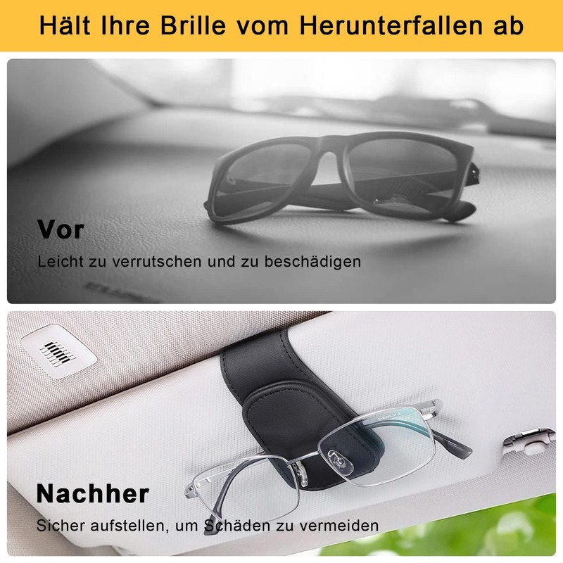- Einfach zu Installieren:Unser sonnenbrillenhalter auto wird mit einem einfachen clip auf der rckseite und einer magnetischen klappe geliefert, die an der vorderseite oder an der seite der sonnenblende befestigt werden kann. Dann ?ffnen sie die magnetische klappe, legen die sonnenbrille ein und befestigen die klappe mit magnetischer kraft.
