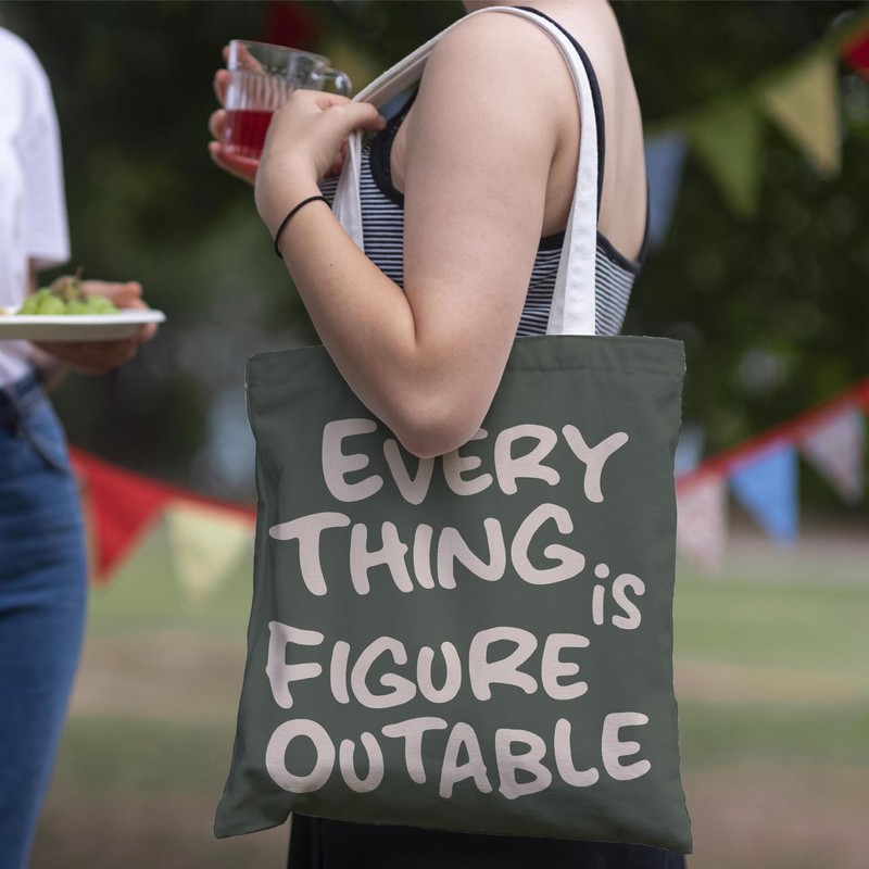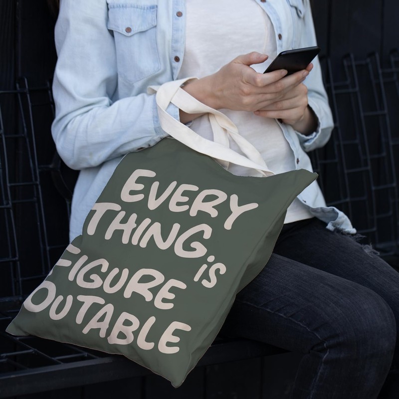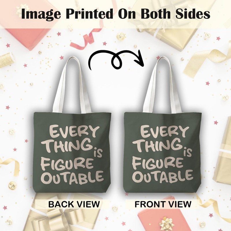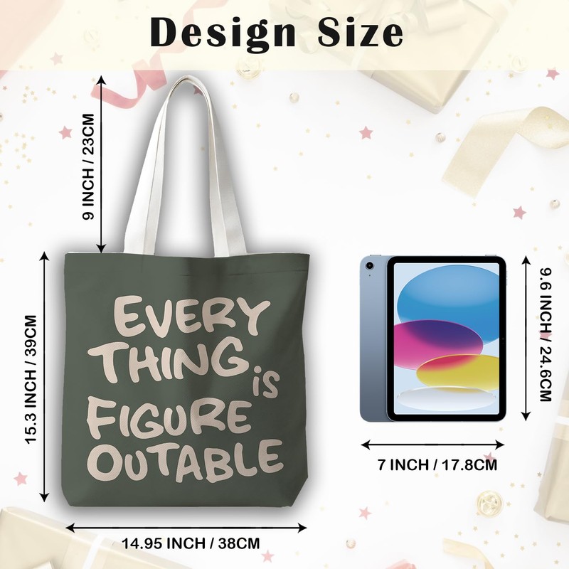 JINYO Everything Is Figureoutable Canvas Tote Bag, Inspirational Motivational Gifts Tote Bags for Women Coworkers Friends, Trendy Retro Sage Green Reusable Grocery Bags Shopping Bag