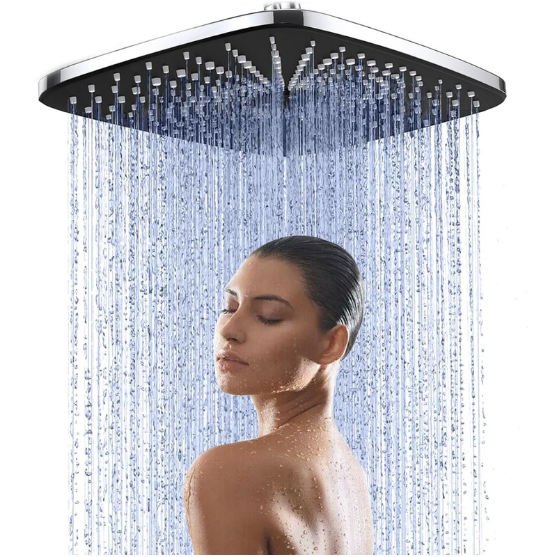 JINYOMFLY Rain Shower Head, 12 Inches, Shower Head, Rain Shower, 360° Adjustable with Anti-Limescale Nozzles, Rain Shower Head, Square Shower Head, Water-Saving Built-in Shower Heads for Bathroom