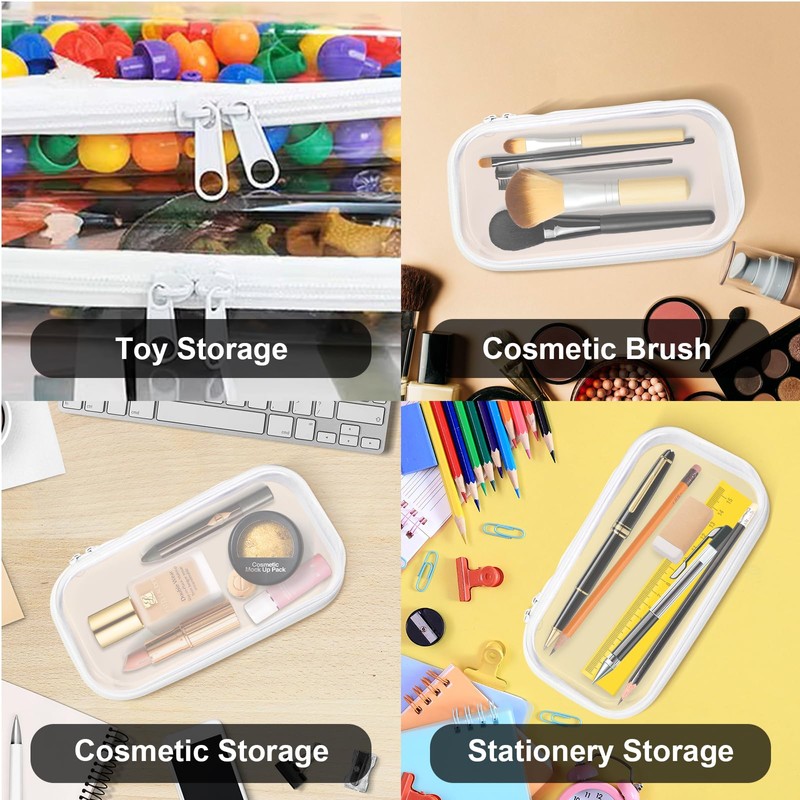 Jiozermi 2 Pcs Clear Hard Shell Zipper Case, Portable Cosmetic Case with Zippers, Clear Zipper Pouches Hard Shell Toy Storage for Organizing, Storage, Pencil Case(Large)