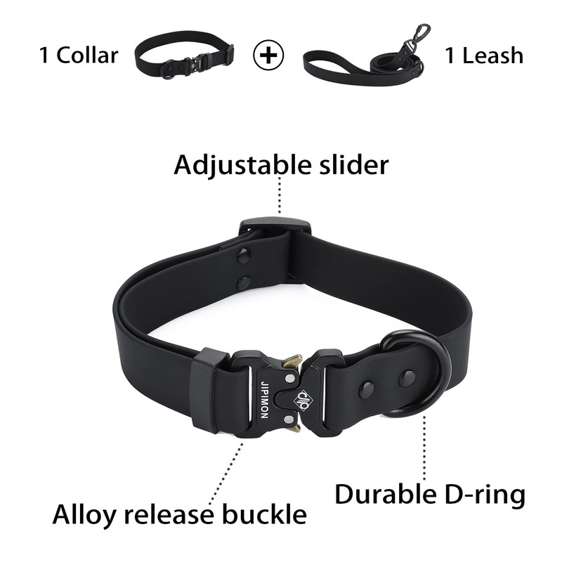 JIPIMON Waterproof Dog Collar and Leash Set Adjustable Quick Release Buckle Collar Leash for Small Medium Large Dogs (Medium, Black)