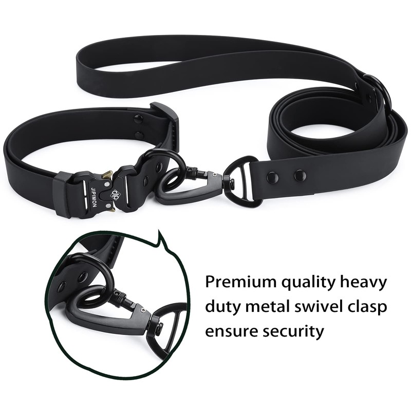 - WATERPROOF DOG LEASH: The length of the leash is not adjustable and the length is fixed. The total length of it is 5 ft. The most comfortable distance between you and your dog. Waterproof dog leash with a strong zinc alloy buckle, metal D-ring and triple rivet protection. The waterproof leash is strong and non-slip, so you can hold it tightly when you are sweaty or greasy due to dog snacks.