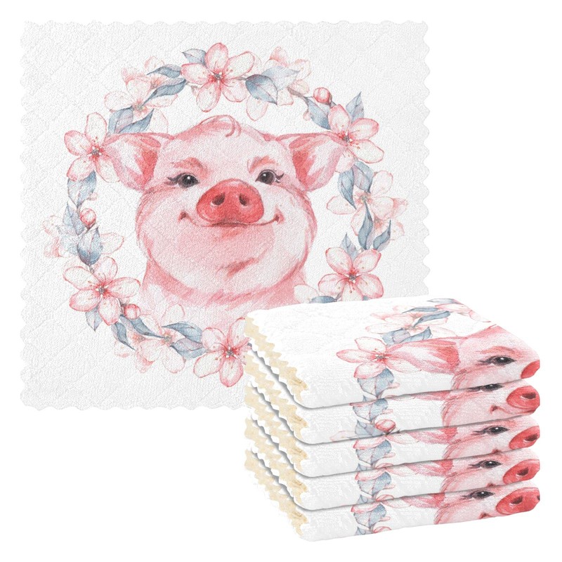 JIPONI 6 Pack Kitchen Dishcloth, Beautiful Pink Pig Flower Absorbent Dish Towels Reusable Soft Cleaning Cloths 11 x 11 inch