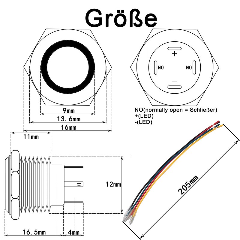 - LED lighting: the LED light with voltage of 12V-24V is independent of the circuit of the button switch. It can light up constantly or can be controlled by the switch, which depends on wiring methods. You can choose a connection type according to your wishes.