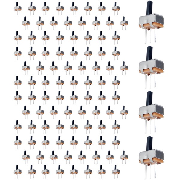 JIQI 5mm/0.2" High Knob Vertical Micro Mini Slide Switchs,3 Pin 2 Position DC 50V 0.5A 1P2T SPDT Toggle Switches Panel Mount 12D00-G5(100PCS)