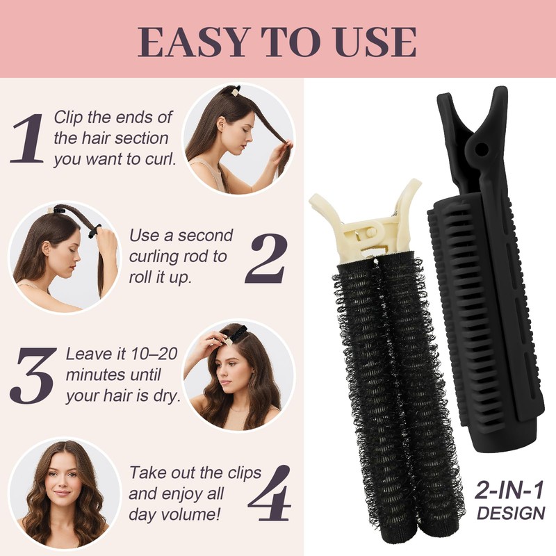 - 【Volumizing Hair Clips For Lift Without Damage】Say goodbye to flat roots! These volumizing hair clips feature a 2-in-1 roller clip design with gentle hook-and-loop fasteners that lift hair at the roots for long-lasting volume and bounce—without heat, breakage, or damage. Ideal for adding body without sacrificing your hair’s health.
