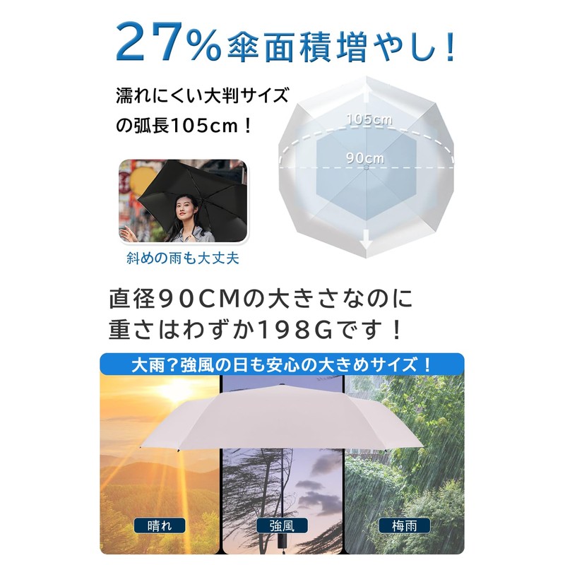 - Approx. 6.6 oz (198 g). Lightest Auto Open and Close Umbrella Ever】Using expensive carbon fiber skeleton, you can experience the ultralight surprise by reducing the weight of the umbrella by 90cm in diameter to 203 grams lighter than apple. Lightweight and durable, you will not get tired of using it for a long time