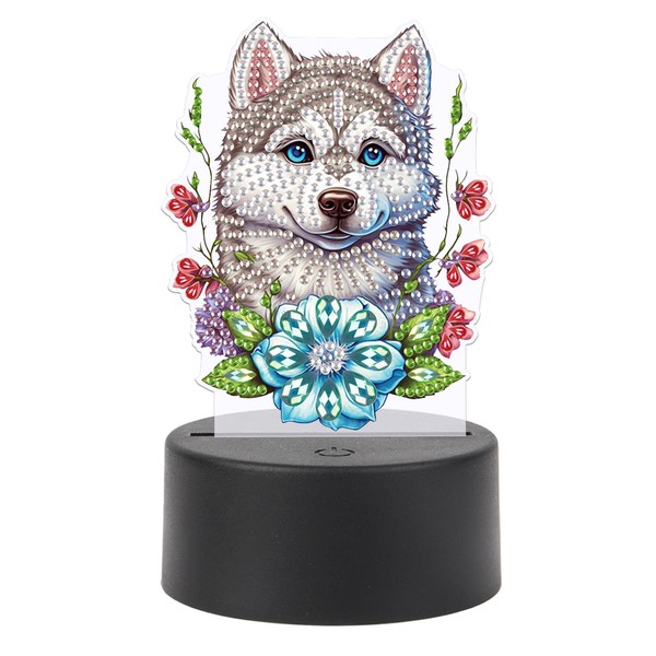 JISHSHAY Diamond Painting Night Light Diamond Art Table Lamps Gem Art LED Lights Gem Painting Desk Lamp Mosaic Kits for Adults DIY Kits for Adults with Special Shaped Crystal Dog Flower