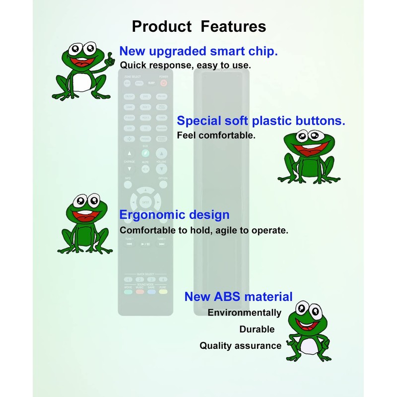 • 【Note】 Pre-Programmed, can’t be Programm ed to other devices again; Batteries are NOT included; This remote may not do the button function such as ECO correctly if your Receiver doesn’t have the ECO button on the original remote.